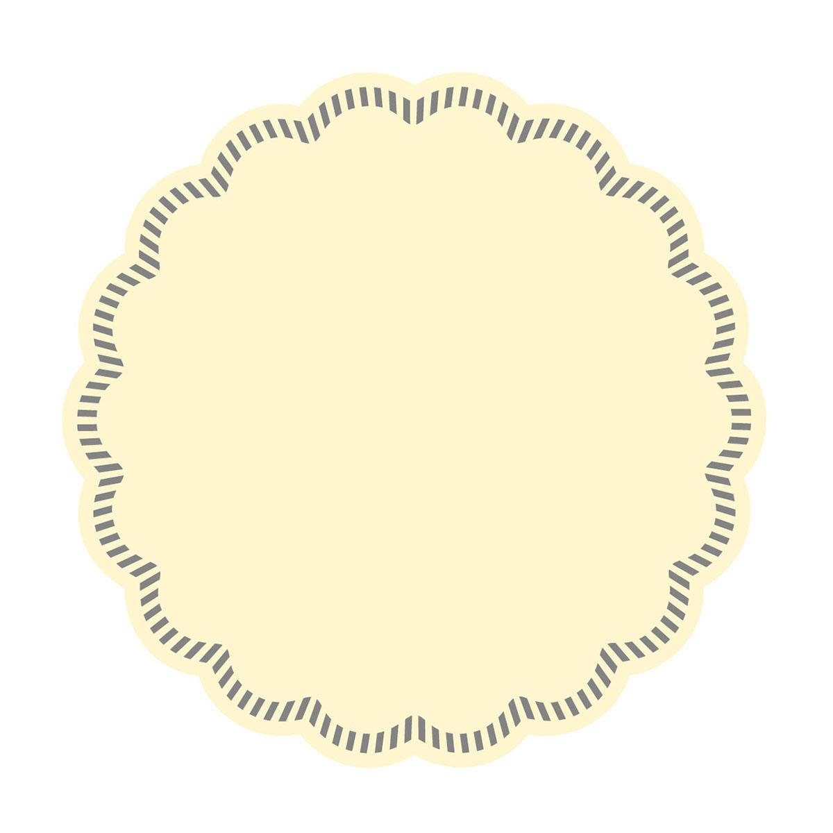 Coastere crem sau suporturi din hârtie pentru pahare sau cești, cu margine ondulată.
