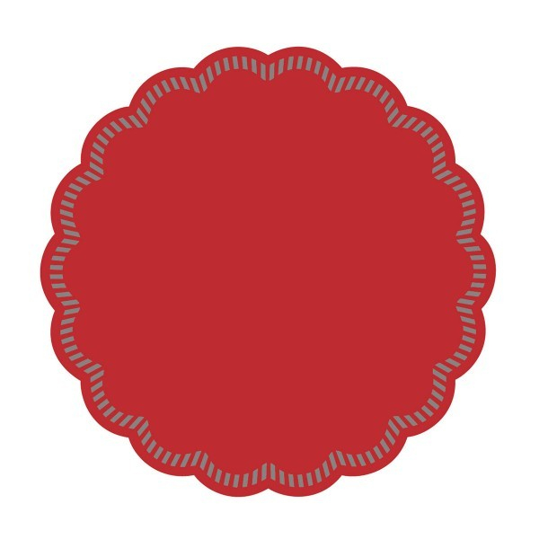 Coastere roșii sau suporturi din hârtie pentru pahare sau cești, cu margine ondulată.