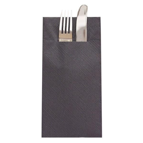Servetele cu BUZUNAR pentru tacamuri Tissue Deluxe Light - Negre / 40 x 40 cm / 75 buc