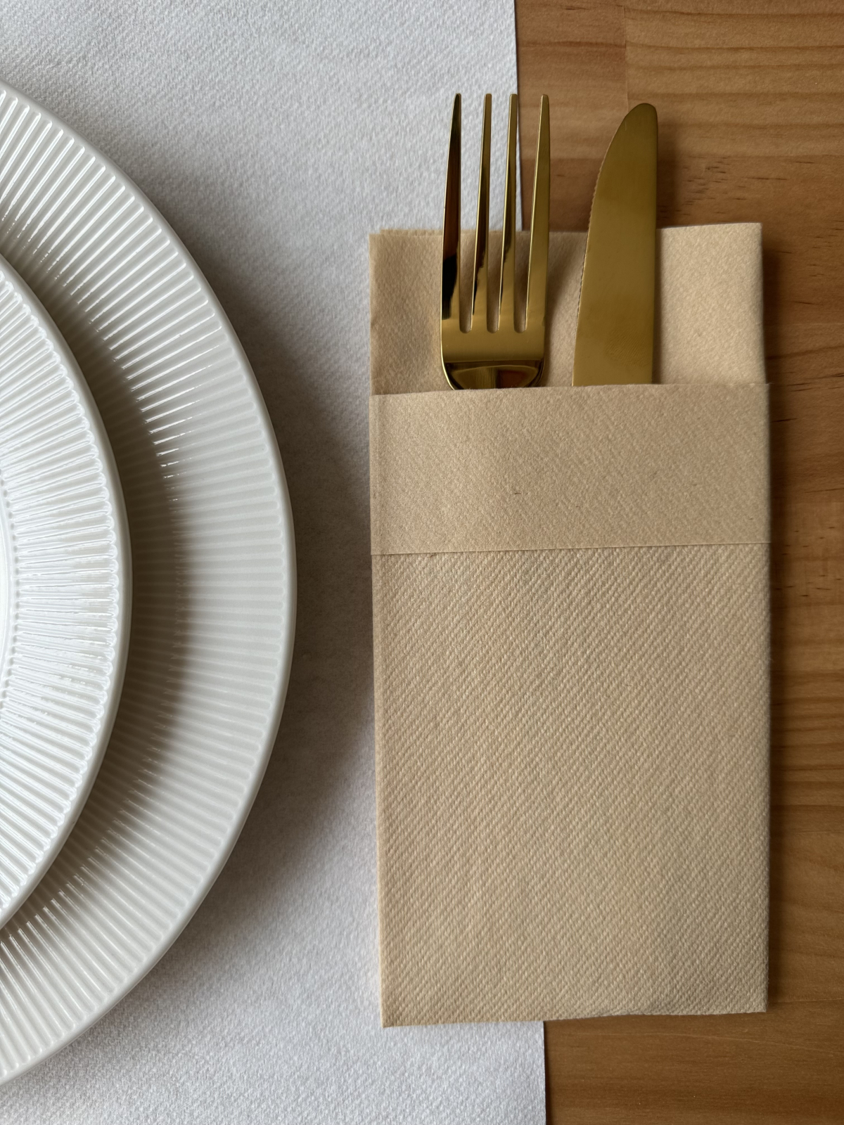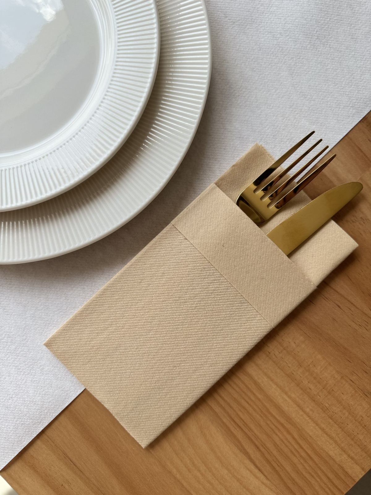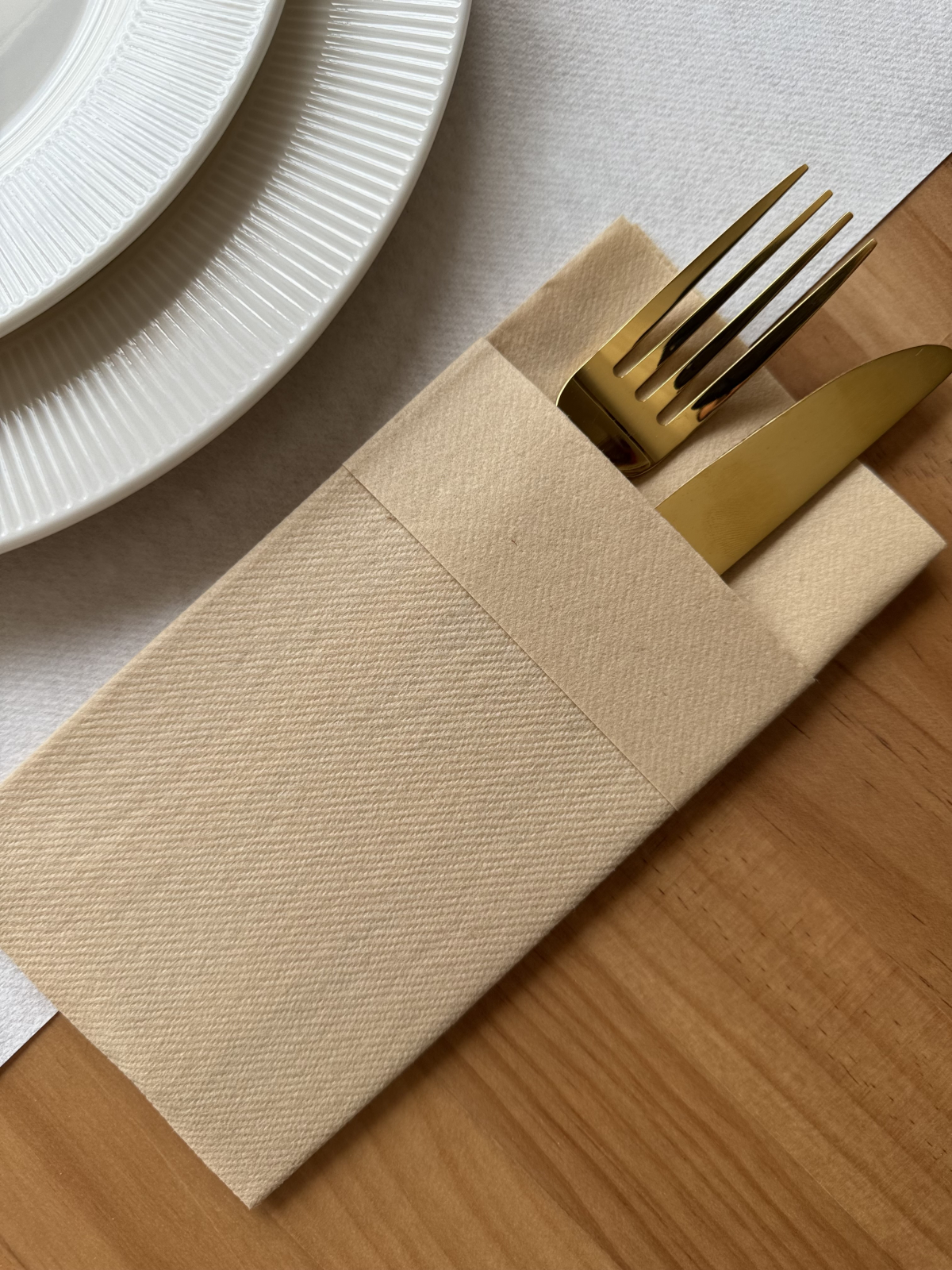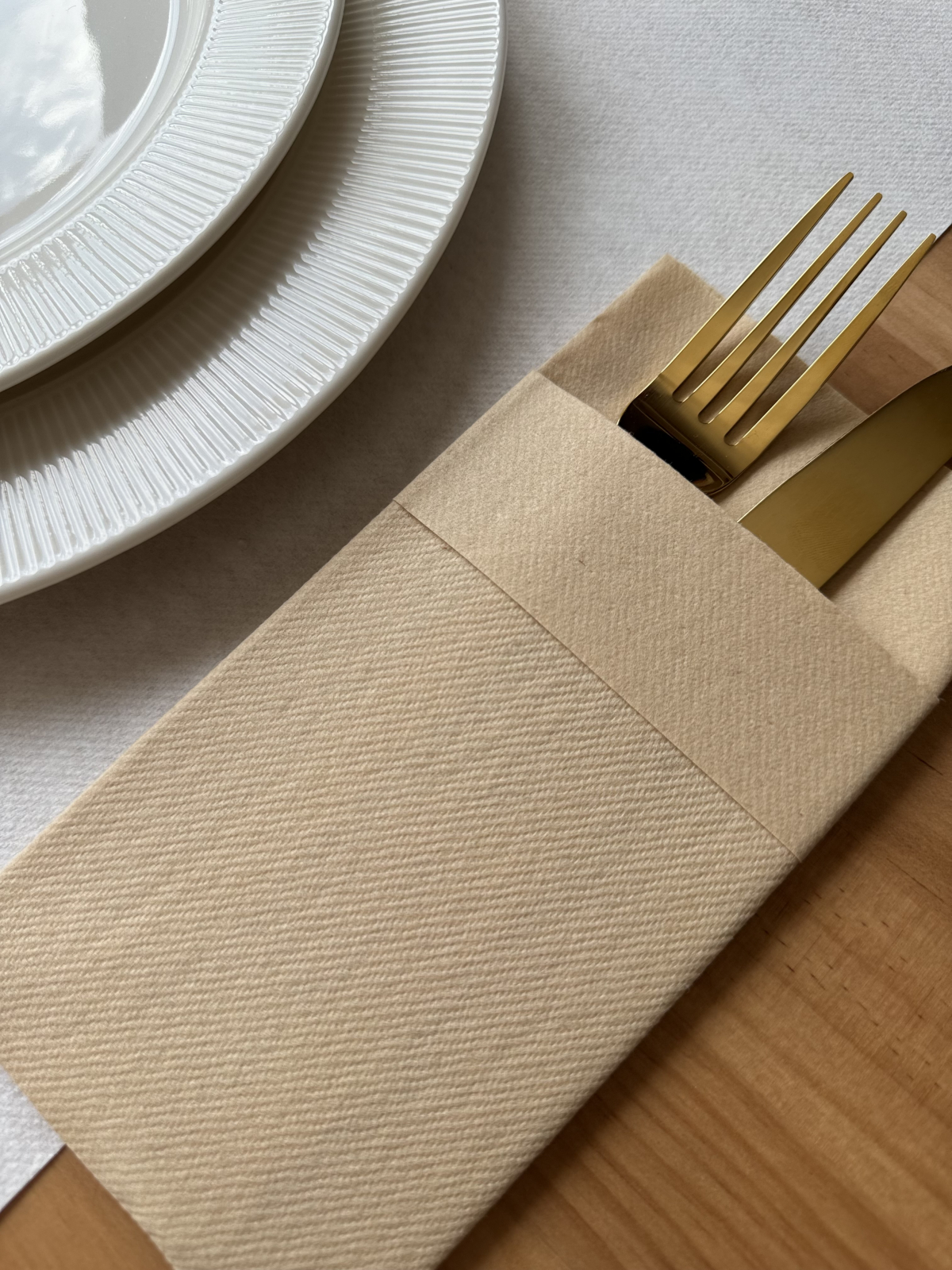 Servetele cu BUZUNAR pentru tacamuri Linclass cu manseta - Sand (Crem inchis) / 40 x 40 cm / 50 buc