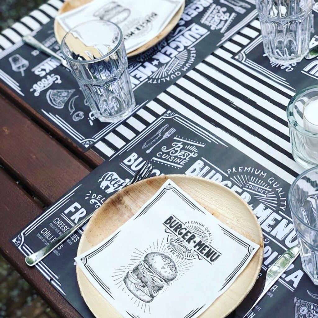 Cu acest imprimeu pe naproane, transmiți și vizual valoarea preparatelor tale, deoarece imprimeul modern alb-negru asigură un design nobil al meselor. Încântă-ți oaspeții cu un decor de masă în care burgerii și alte preferate joacă rolul principal!