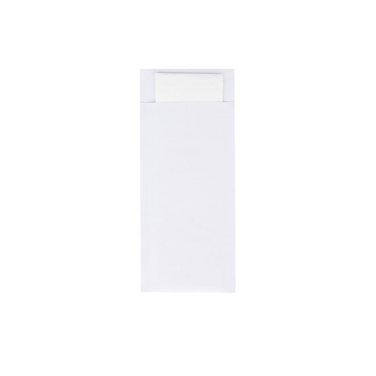 Port-tacâmuri albe din hârtie pentru tacâmuri + șervețel alb, pliat.