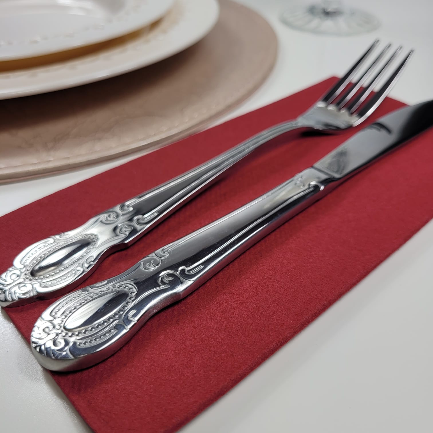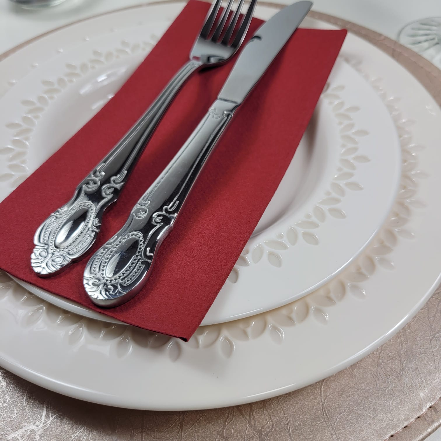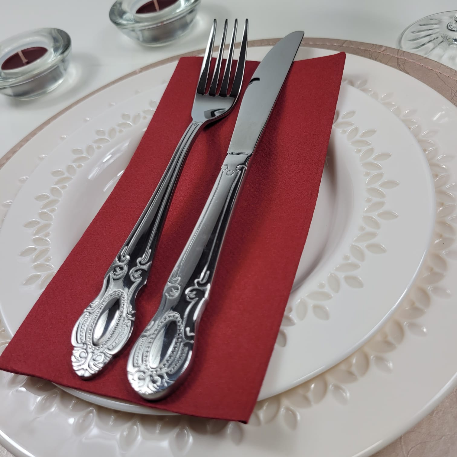 Șervețele bordo, groase, ultra calitative, pliate 1/8, gata oricând pentru servire.