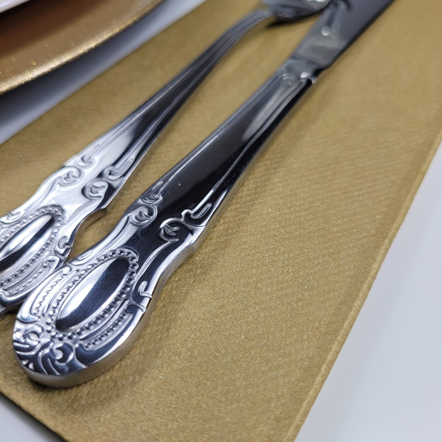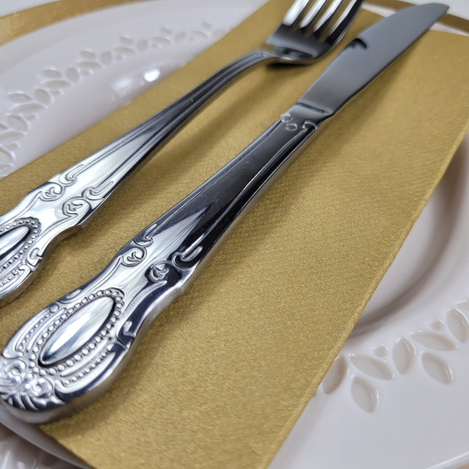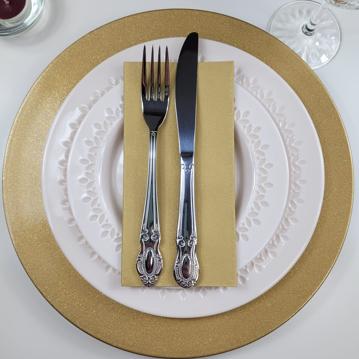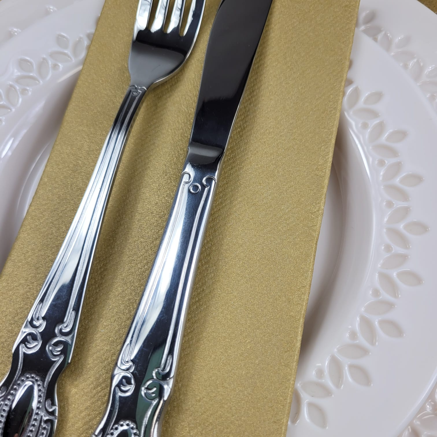 Șervețele aurii, groase, ultra calitative și elegante, pliate 1/8, gata oricând pentru servire.