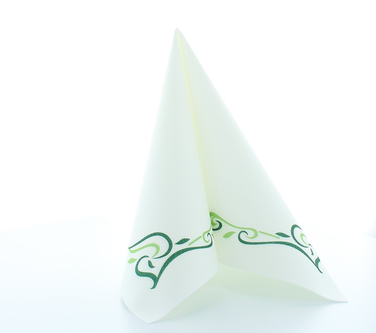 Servetele de masa festive Linclass Colour Line (albe, contur verde) / 40 x 40 cm / 50 buc