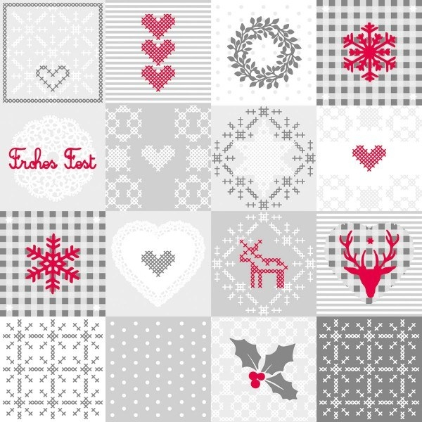 Servetele de masa festive Linclass pentru Craciun / Revelion - Pepe (rosu-gri) / 40 x 40 cm / 50 buc