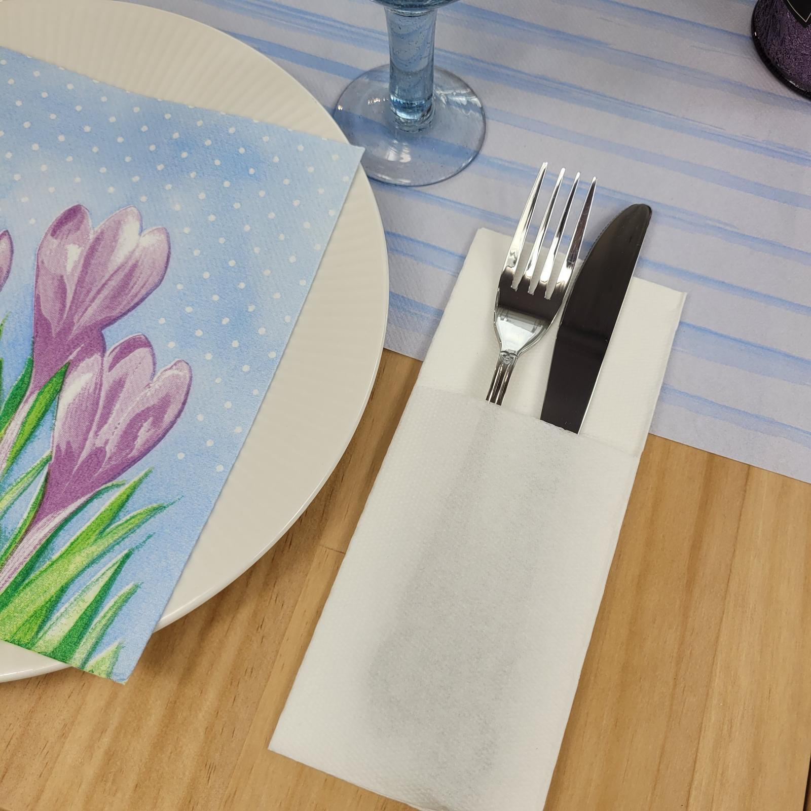 Sunt deja împăturite în așa fel încât formează un buzunar practic și igienic, destinat așezării tacâmurilor în interior.