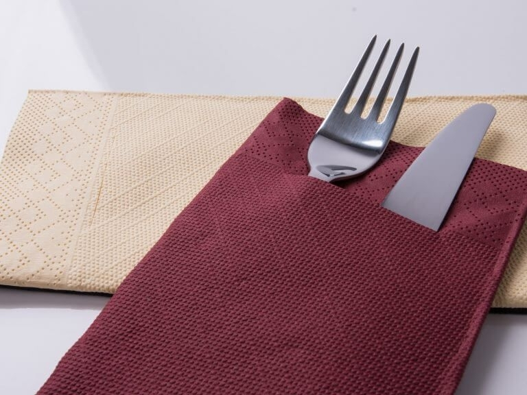 Șervetele cu buzunar oferă tacâmurilor un loc de prezentare igienic, fiind alternativa ideală pentru produsul corespondent din țesătură.