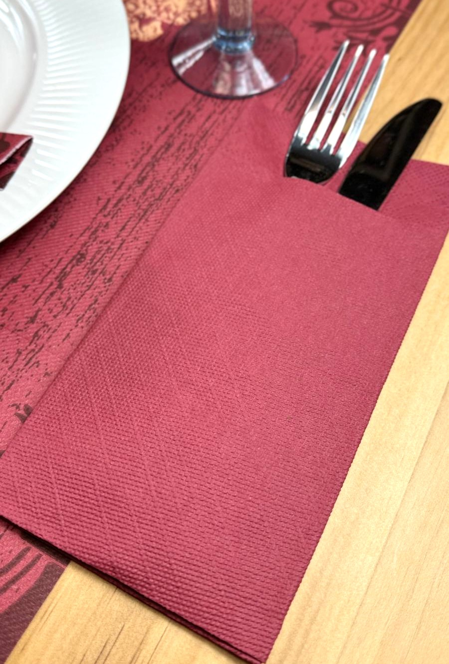 Servetele cu BUZUNAR pentru tacamuri - Tissue Deluxe (Bordo) / 40 x 40 cm / 75 buc