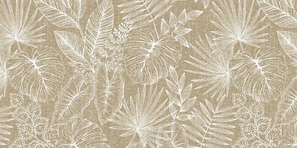 Traversa de masă Linclass Kona, cu imprimeu alb natural pe fundal bej, pentru decoruri de masă spectaculoase în orice sezon festiv. Se potrivește perfect evenimentelor cu tematică în culoarea anului 2025 - Mocha Mousse.