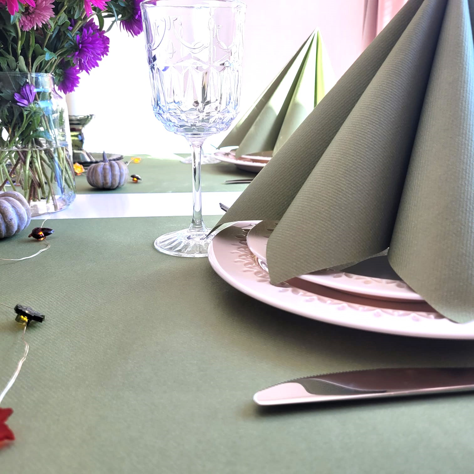 Oferă un plus de rafinament decorului meselor tale cu ajutorul setului de masă Linclass de culoare oliv.
