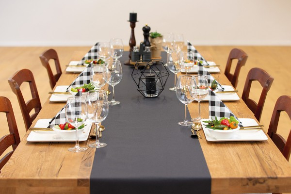 Traversă de masă neagră pentru decoruri de masă spectaculoase.