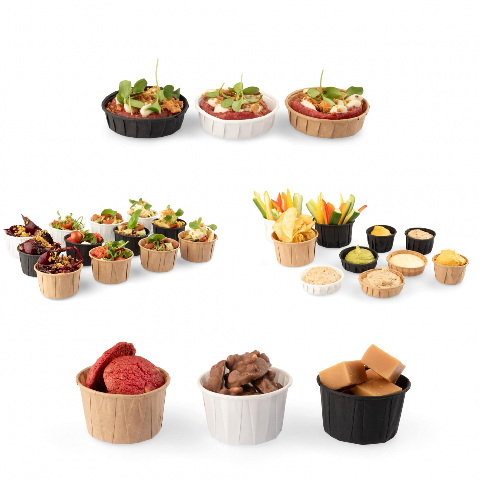 Cupe albe din hârtie. Ideale pentru prezentarea deserturilor, aperitivelor, gustarilor.