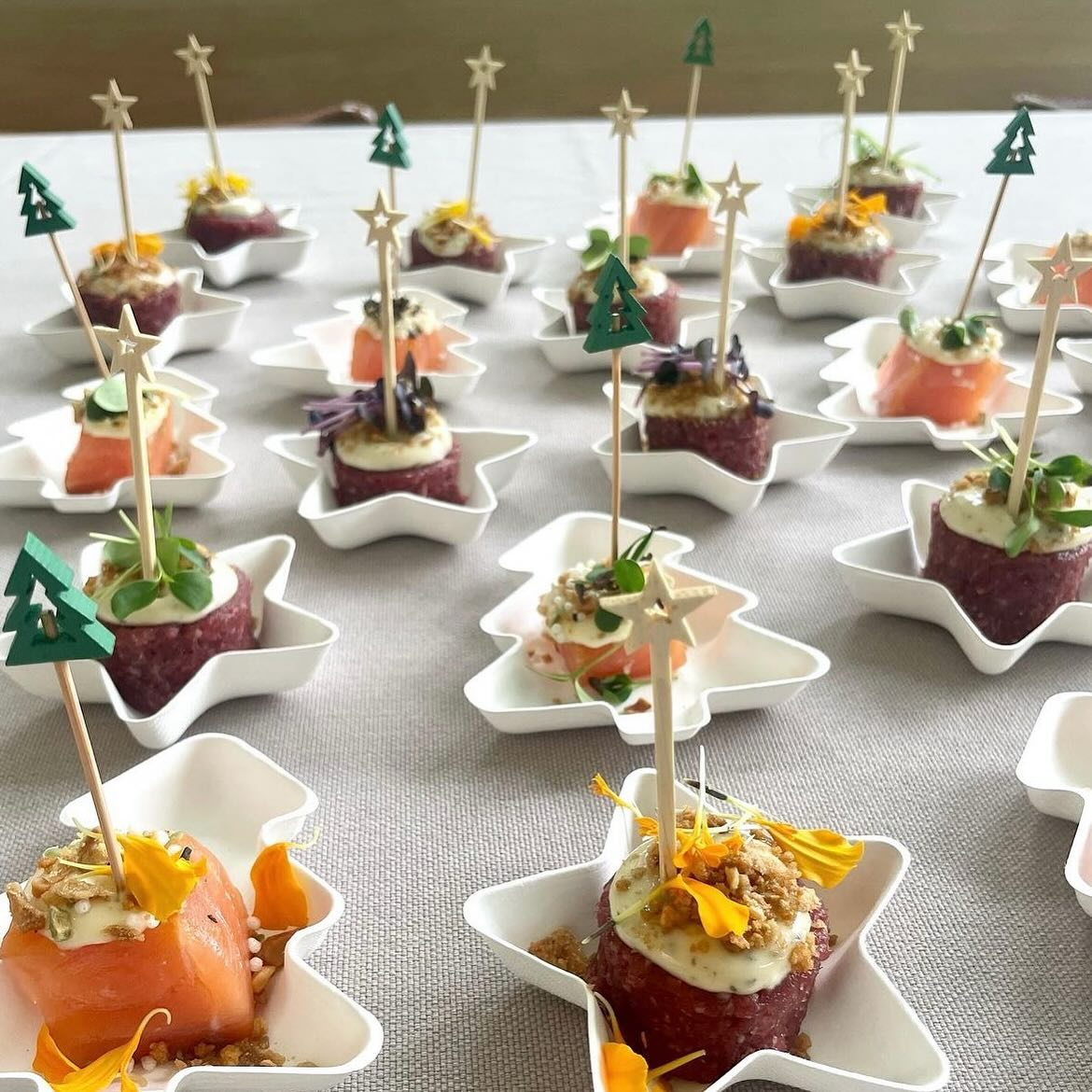 Mini farfurii in forma de braduti, biodegradabile, din pulpă de trestie de zahăr, pentru prezentarea perfectă a operelor de artă culinară în zona de bufet in perioada sarbatorilor de iarna.