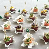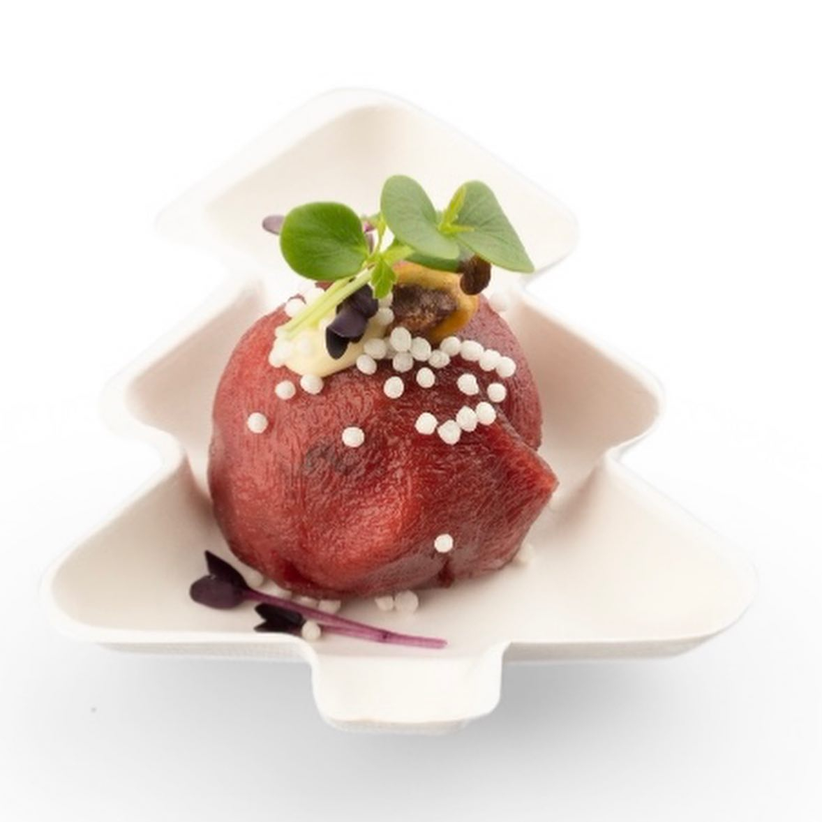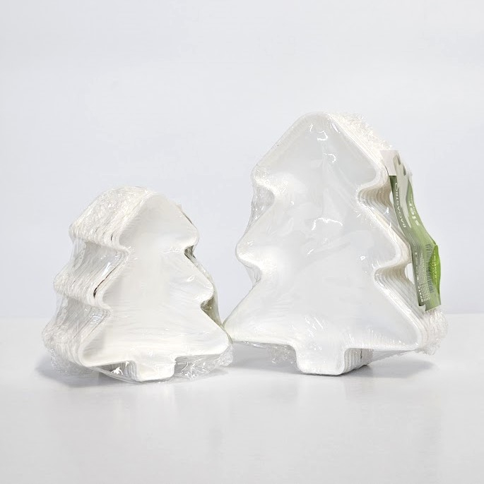 Mini farfurii in forma de braduti, biodegradabile, din pulpă de trestie de zahăr, pentru prezentarea perfectă a operelor de artă culinară în zona de bufet in perioada sarbatorilor de iarna.